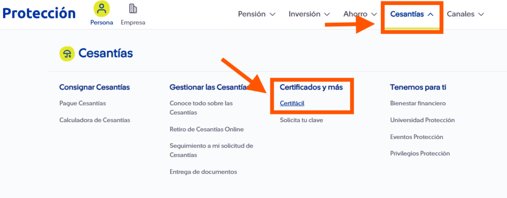 1️⃣ – Ingresa a la sección de “Certificados y más” en “Cesantías” y haz click en “Certifácil“. Revisa la imagen que está abajo 👇